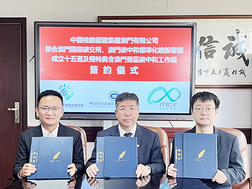 【本報訊】日前,中國檢驗認證集團澳門有限公司(以下簡稱“中檢澳門公司”)聯合澳門國際碳排放權交易所(簡稱“澳碳所”)、澳門碳中和標準化建設聯盟(簡稱“澳碳標盟”)共同宣佈,正式成立“第十五屆全國運動會及全國第十二屆殘疾人運動會暨第九屆特殊奧林匹克運動會澳門賽區碳中和工作組”(以下簡稱“工作組”)。工作組表示,將系統推進澳門賽區綠色辦賽,圍繞賽事全程開展碳排放核算、減排路徑設計、標準化建設與認證等工作,助力澳門賽區實現從“綠色賽事”到“碳中和賽事”的全面跨越,打造粵港澳大灣區綠色賽事示範。