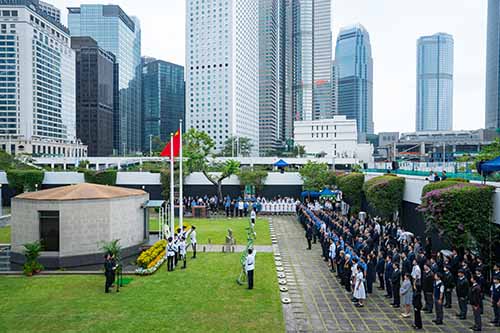 早上8時,奏唱國歌及升旗儀式後,全場默哀兩分鐘。陳國基、中央駐港機構代表、司法界代表、外國駐港代表、原東江縱隊港九獨立大隊代表林珍、羅競輝等獻上花圈並鞠躬,悼念先烈。前行政長官曾蔭權,特區政府多名司局長等出席。