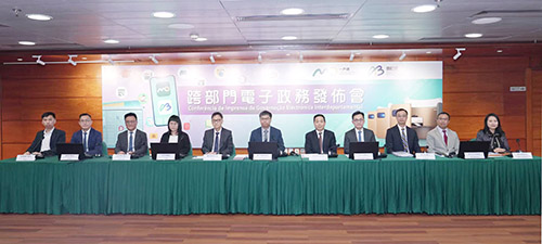 政府跨部門昨日上午10時在水坑尾公共行政大樓舉行新聞發佈會,行政公職局、市政署、法務局、經濟及科技發展局、金融管理局、治安警察局、教育及青年發展局、社會工作局、郵電局、交通事務局等部門代表及深合區商事服務局相關負責人出席,介紹電子政務的最新發展情況並公佈多項新增的跨領域服務,隨後於11時半在慕拉士政府政府綜合服務中心進行現場操作演示。