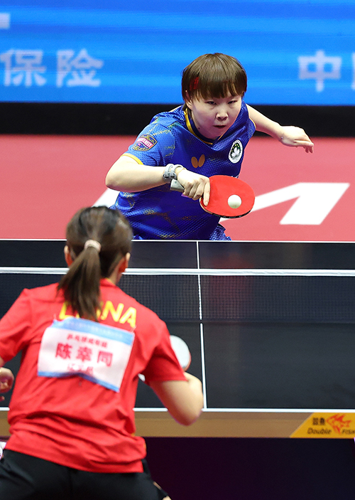 朱雨玲面對現役國手陳幸同,首兩局以11:6及11:7勝出,但陳幸同之後調整狀態,在第三局加快擊球節奏,通過“快劈長+銜接搶攻”打法撕開朱雨玲的防線,以11:3扳回一局。第四局,陳幸同繼續保持強勢,將朱雨玲的得分限制在5分,以11:5再下一城,將局數追成2比2平手。