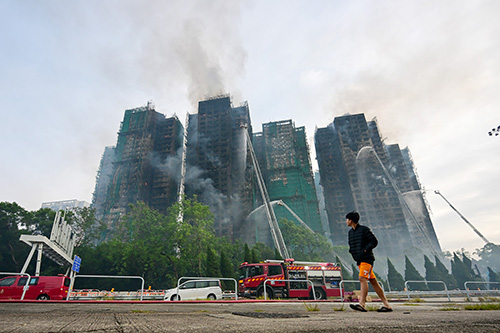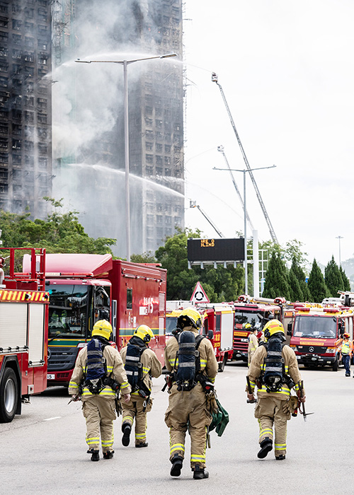 發生五級大火的宏福苑由8棟樓宇組成,其中7棟受到火災波及。香港消防處副處長(公眾安全及機構策略)黃嘉榮昨日下午在現場向傳媒介紹火災救援情況表示,消防處動用11條消防喉、8部旋轉台鋼梯車在現場進行噴水滅火,共調派200多輛消防車輛及約100輛救護車輛,出動超過1,250名消防及救護人員進行救援,同時亦利用4架無人機在低空進行熱力監察,嚴防復燃跡象。他指出,此次救援面對多重挑戰和困難,7棟涉事大樓外牆面積相當大,且搭建了竹製棚架,這些棚架令火勢迅速蔓延,並不時出現倒塌情況,加上火場溫度極高,令救援難度增加。
