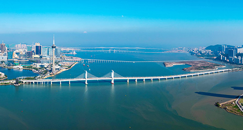 據政府早前公佈的資料,第五條跨海通道在嘉樂庇總督大橋東側修建,全長2,400多米,採用雙向六車道設計,以隧道方式連接新城填海B區和D區,惟政府之後向中央申請置換填海地段,取消在新城D區填海,改在新城A區和北區之間水道填海,令第五通道的建設陷入擱置。隨著新城D區填土及堤堰建造工程於今年4月啟動,使得第五通道建設“重見天日”。譚偉文表示,D區填海工程的開展,為重啟第五通道建設創造了條件,相信該通道建成後可緩解澳門半島交通壓力尤其是皇朝區的交通擁堵問題。