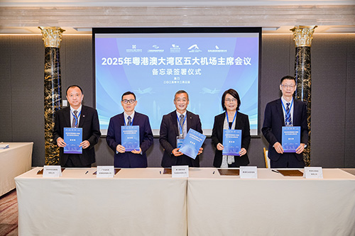 會議期間,各成員機場代表聚焦“協同合作”與“創新轉型”兩大議題,深入交流航線網絡優化、物流聯通及智慧化轉型的實踐經驗。會議推動大灣區五大機場在航線網絡、物流聯通等軟聯通以及智慧化硬建設等領域深度融合。五大機場於會上圍繞主題達成戰略共識,並正式簽署會議備忘錄。五大機場承諾延續“攜手合作、互助支援、創新開拓、共同發展”的宗旨,深化運營協同、智慧機場建設及商業合作,重點優化空域資源配置與貨運物流整合,以提升大灣區航空樞紐的國際競爭力與服務效能,共同推動世界級機場群建設,為區域經濟發展與全球航空網絡提供關鍵支撐。
