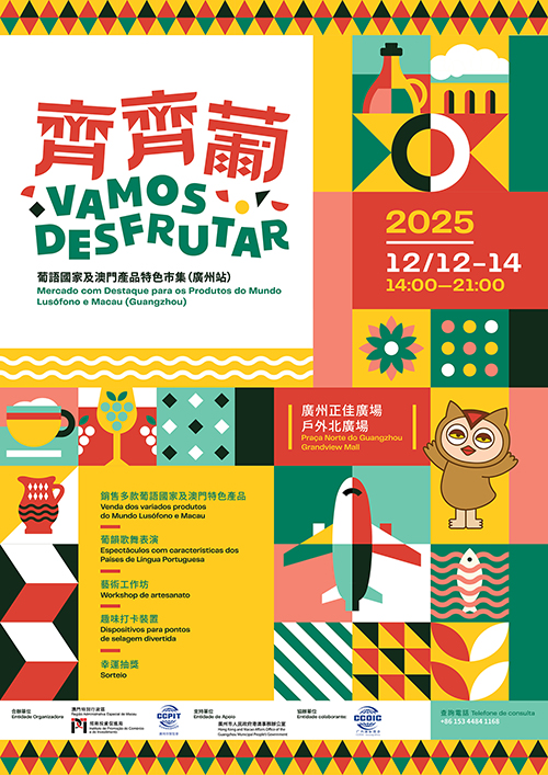 【本報訊】據招商投資促進局消息,為搭建葡語國家特色產品展銷和文化交流推廣平台,展現澳門中葡商貿豐富多元魅力,2025“齊齊葡-葡語國家及澳門產品特色市集”(廣州站)將於12月12日至14日在廣州正佳廣場戶外北廣場舉行。這是該活動繼橫琴後在內地其他城市舉辦,將有26家澳門中小企將展銷逾200款葡語國家及澳門特色產品,並有葡語國家表演及多場藝術工作坊等,現場並設限定優惠即抽即賞。