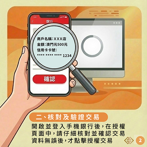 【本報訊】電信網絡詐騙無日無之,詐騙分子往往會誘導受害人下載具有屏幕共享功能的應用程式,利用屏幕共享功能,獲取受害人的賬戶信息、銀行卡號、驗證碼等,從而騙取錢款。為進一步提升銀行卡網上交易的安全性及持卡人的權益保障,澳門金融管理局已要求本澳發卡銀行於本月下旬起在其手機銀行內新增銀行卡網上交易授權功能,代替一次性短訊驗證碼以授權有關交易。未開通手機銀行服務的持卡人,則可沿用一次性短訊驗證碼授權交易。