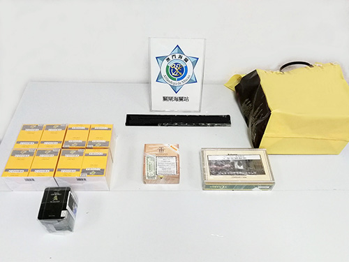 本月21日,海關人員在關閘口岸出境旅客檢查區發現一名內地女子神情緊張,經檢查,發現該女子將約2,011克雪茄藏在隨身物品內,試圖將之偷運出境。