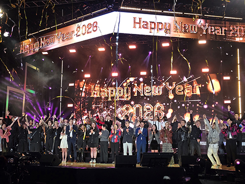 在辭舊迎新之際,不少旅客專程來澳體驗跨年氣氛,昨晚中區大三巴牌坊、議事亭前地及金光大道一帶光影璀璨,三五知己或一家大細結伴同行,其樂融融。此外,祐漢公園、三盞燈圓形地和筷子基北灣休憩區有坊會舉辦除夕倒數活動,不少居民一家大細到場,共慶2026年來臨。
