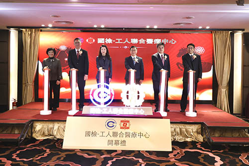 開幕儀式由中聯辦社會發展部副部長趙河清,衛生局社區醫療衛生廳廳長王燕,中國企業協會理事長張國新,中國檢驗認證集團港澳台區域總部總裁王新,澳門工會聯合總會副會長李從正、會務顧問梁玉華擔任主禮嘉賓;並邀請了藥物監督管理局副局長吳國良,澳娛綜合渡假股份有限公司董事兼員工福利諮詢委員會主席梁安琪,衛生局世界衛生組織傳統醫藥合作中心主任莫蕙,中聯辦社會發展部四級調研員陳琨,澳門生產力暨科技轉移中心理事長關治平,澳門工會聯合總會副理事長兼社會服務機構管理部長趙蘭瑛等出席。與會嘉賓共同見證了這一重要時刻,並對國檢-工人聯合醫療中心的成立表示祝賀及寄予厚望。