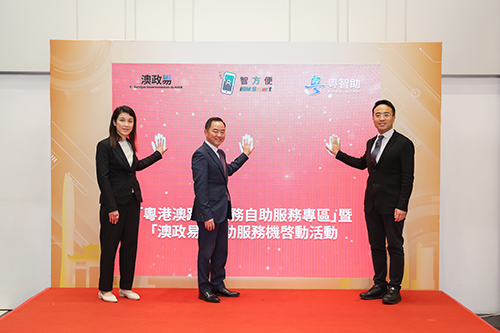 澳門特區政府於香港設置的“澳政易”自助服務機位於香港長沙灣東京街西3號庫務大樓一樓,提供澳門特區政府有關社會福利、身份證明、稅務查詢、市政服務、選民登記、交通出行及出入境共7大類別,涉及11個政府部門共37項澳門居民常用的政務服務。啟用活動昨日在香港庫務大樓舉行,由香港數字政策辦公室專員黃志光、廣東省政務服務和數據管理局總工程師顧君冬及澳門身份證明局副局長陳婉麗主禮。