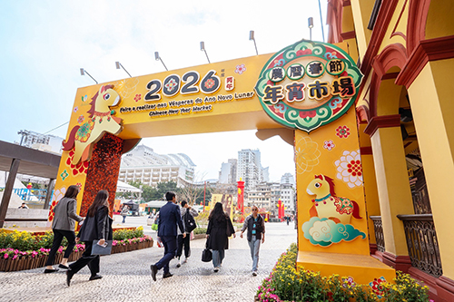 【本報訊】一年一度於塔石廣場舉行的農曆新春年宵市場昨日開幕,設有十六個售賣賀年禮品檔、六個年花檔及四個小食檔。現場除安排了流動表演及舞台表演外,今年亦特別設有攤位遊戲及一連串活動,加上喜慶的新年節日佈置,為春節年宵市場增添濃厚的熱鬧氣氛,與全澳市民及旅客共迎丙午馬年。