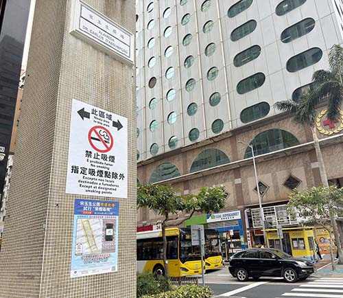 “禁煙區域”入口處地面劃上白色界線和顯示“此區域禁止吸煙,指定吸煙點除外”標誌,並在區域各處張貼標誌和海報以提醒吸煙者。區域內共設9個指定吸煙點,以白色虛線為界,當中放置帶煙灰缸的垃圾桶。“指定吸煙點”盡量設在空曠處,遠離大廈出入口、巴士站等行人較多地方。
