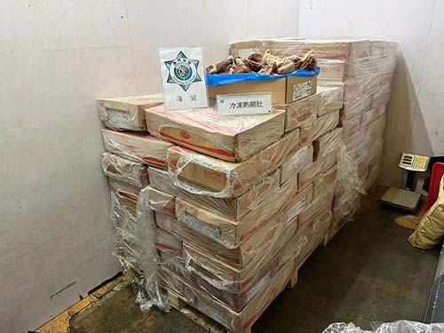 海關搗祐漢水客散貨點 檢1250公斤冷凍熟豬肚