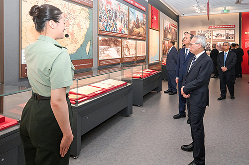他指出,澳門回歸祖國以來,駐澳部隊堅定貫徹落實“一國兩制”、“澳人治澳”、高度自治方針,嚴格遵守澳門基本法、駐軍法和相關法律,忠實履行防務職責,出色完成一系列任務,堅定維護國家主權、安全、發展利益,為“一國兩制”實踐行穩致遠和澳門長期繁榮穩定發揮了定海神針的作用。駐澳部隊官兵以真摯的熱情和高度的責任感,積極參與應急救災、公益活動,贏得了澳門同胞的信任與尊敬;以實際行動傳承了人民軍隊的優良傳統,詮釋了人民軍隊的光榮使命,演繹了愛澳親民的生動故事。軍史陳列為廣大澳門同胞提供了一個開展愛國主義教育的生動課堂,藉此我們能夠重溫人民解放軍的光輝歷史,領略威武之師、文明之師的精神風貌,了解新時代強軍建設的偉大成就。