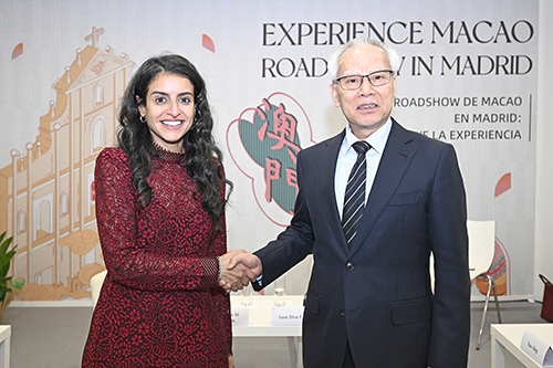 【本報訊】出訪歐洲四國的行政長官岑浩輝於當地時間21日下午轉抵西班牙訪問,並在當日晚上抵達馬德里後,與聯合國世界旅遊組織秘書長謝哈•阿爾•諾瓦伊斯(Shaikha Al Nuwais)會面,雙方就深化旅遊推廣、人才培訓,以及拓展國際客源等議題交流意見。