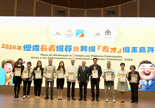 【本報訊】由社會工作局與勞工事務局合辦、社會保障基金協辦的“2024年優秀長者僱員暨聘僱‘耆才’僱主嘉許計劃”嘉許禮昨日下午假澳門科學館會議廳舉行,有10名優秀長者僱員及62間“耆才”僱主的商戶和機構獲嘉許。