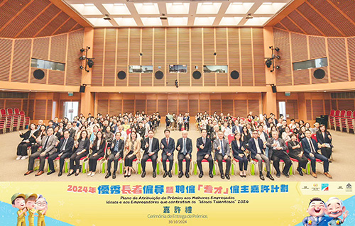 嘉許禮邀請中聯辦副秘書長兼社會工作部部長黃華蓋、長者事務委員會委員、評審團隊、商會代表、獲獎僱員及其家屬、獲嘉許僱主等人出席,約160人。有關獲嘉許名單,可瀏覽以下網頁:https://www.dsal.gov.mo/zh_tw/standard/news_detail/article/elder2024.html。.jpg)