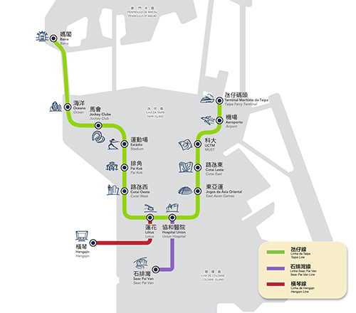 輕軌橫琴線全長約2.2公里,設有“蓮花站”和“橫琴站”兩個車站。乘客如要經由橫琴口岸過關前往內地,便可選搭輕軌“橫琴線”列車,由“蓮花站”經過位於十字門水道的河底隧道,到達設於橫琴口岸澳門口岸區地下的“橫琴站”。乘客使用升降機或扶手電梯出站後,便可輕鬆步行前往離境大堂。至於過關抵達澳門的旅客,也可選擇乘坐“橫琴線”,透過“蓮花站”的轉乘通道乘坐“氹仔線”前往澳門各處。