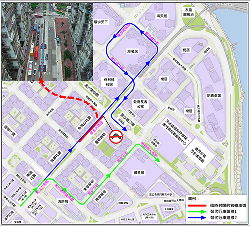 此外,公共建設局與交通事務局早前也聯同地區社團到現場視察及聽取意見,參考基馬拉斯大馬路行人天橋建造的安排,已要求承建商提前加強交通指示,增加工地和周邊道路的照明,增設魚目鏡和LED指示牌等,以保障行人和行車安全。