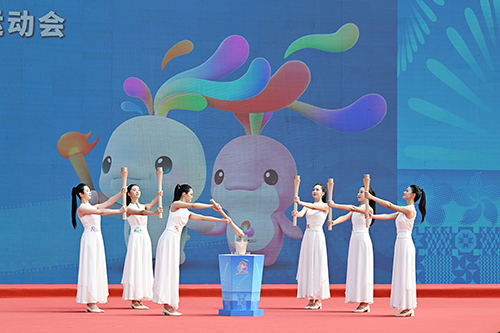 在我國自主設計建造的首艘大洋鑽探船“夢想號”的見證下,十五運會和殘特奧會火種採集儀式在位於廣州南沙區的廣州海洋地質調查局科考碼頭舉行。儀式上,火種護衛隊將來自1,522米深處的海底“源火”安放至“源火”台,採火少女在“源火”台引燃手中的採火棒,中共中央政治局委員、廣東省委書記黃坤明,十五運會和殘特奧會組委會主任、國家體育總局局長高志丹,殘特奧會組委會執行主任、中國殘聯理事長周長奎,十五運會和殘特奧會組委會執行主任、香港特別行政區行政長官李家超,十五運會和殘特奧會組委會執行主任、澳門特別行政區行政長官岑浩輝,十五運會和殘特奧會組委會執行主任、廣東省委副書記、省政府黨組書記、深圳市委書記孟凡利共同登台,接過採火棒,一起點燃十五運會和殘特奧會火種盆,寓意粵港澳三地攜手共進、同心築夢。