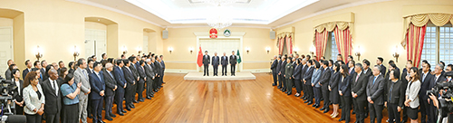 新任行政法務司司長、保安司司長、檢察院檢察長宣誓就職儀式昨日上午10時在特區政府總部舉行。奏唱中華人民共和國國歌後,在岑浩輝監誓下,黃少澤、陳子勁、唐曉峰根據《就職宣誓法》規定宣讀誓詞,宣誓就職。隨後,黃少澤再在岑浩輝監誓下,宣誓就任行政會委員。
