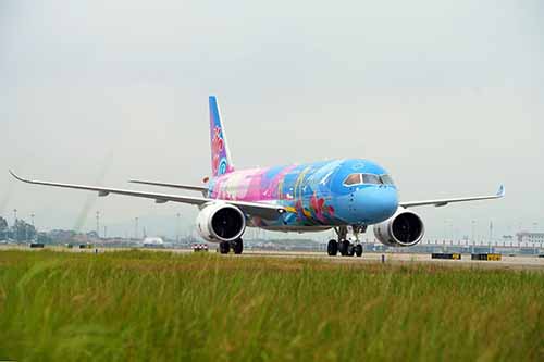 首頁» 首架C919十五運會主題彩繪飛機首航