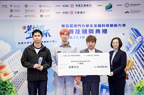 本賽事由9月到11月19日共歷時3個月,共有234名選手報名,提交作品85份,經過激烈角逐,最終16份作品成功入圍決賽。決賽中,來自澳門城市大學的翁傳振、李思墨、鄧淼鑫選手的作品《“青葵寶”──基於動態智能風控的青少年金融素養賦能平台》脫穎而出,成功斬獲一等獎;澳門科技大學的王蘊杰、鄭貽銘、高岳涵的作品《基於RDA的智慧畜牧資產金融化解方案》及澳門理工大學的吳楚慧、黃越、房君儀的作品《智審合規:合規智慧審查助手》獲得二等獎;復旦大學及清華大學的歐陽梓華、柯藍琪、何昊智的作品《QuantumFlow與跨境支付結算》,澳門城市大學的曾祺棕、岳新正、劉子涵的作品《灣區E企通──基於工行的粵港澳大灣區中小企業“跨境供應鏈貸款+結算”一體化平台》及澳門大學的任嘉浚、黎樂延的作品《結合LLM情緒分析的AI匯率預測與決策輔助系統》獲得三等獎。