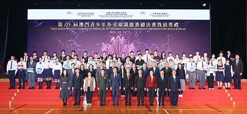 【本報訊】由特區政府與外交部駐澳門特派員公署主辦、教育及青年發展局承辦的第16屆澳門青少年外交知識競賽總決賽暨頒獎禮於昨日在教業中學舉行。本屆比賽吸引37所中學逾9,000名學生參與,經過推廣賽、初賽比拼後進入總決賽的8支隊伍圍繞“一國兩制”的世界意義、四大全球倡議等進行精彩論述。最終,鏡平學校、濠江中學、聖公會(澳門)蔡高中學、教業中學脫穎而出,分獲冠、亞、季、殿軍。