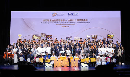 澳門職業技能認可基準是由澳門旅遊大學於2001年在歐盟專家協助下開發的職業技能認證制度。金襟針得主被譽為業界翹楚,憑藉卓越專業技能,通過嚴謹的培訓與競賽,展現與國際標準接軌的實力與水準。今年,美高梅派出60位成員參加金襟針比賽的12個項目,涵蓋餐飲、前台、房務及保安等多個範疇,當中22位成員成功晉身總決賽。