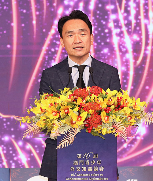 外交部發言人、外交部新聞司副司長郭嘉昆在視頻致辭中表示,澳門青少年外交知識競賽已連續舉辦了16屆,成為了一項品牌活動。習近平主席視察澳門期間強調青年是澳門的希望和未來,是建設澳門和國家的有生力量。澳門青年要心繫澳門,心繫國家,展現志存高遠腳踏實地的良好風貌。當今世界進入百年未有之大變局,十五五規劃建議擘畫了未來五年國家經濟社會發展宏偉藍圖。希望澳門青年珍惜時代機遇,樹立遠大志向,當好“一國兩制”事業的建設者和接班人,為澳門更好融入祖國發展貢獻青春和力量。