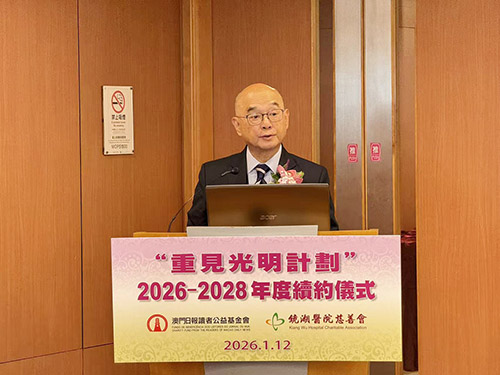 【本報訊】澳門日報讀者公益基金會與鏡湖慈善會合作推出的“重見光明計劃”昨日舉行2026年至2028年度續約儀式。據了解,該計劃自1995年推出以來,已累計為經濟困難的眼疾患者資助各類眼科手術2,711眼次。根據兩會新簽訂的協議,未來3年,澳門日報讀者公益基金會將每年撥款180萬元,聯同鏡湖醫院慈善會的配套支援,由鏡湖醫院提供先進眼科技術,為合資格的本澳眼疾患者提供手術及治療。
