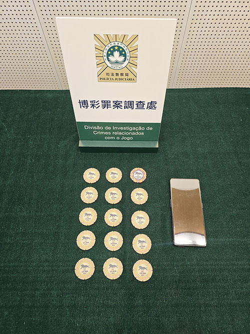 司警調查發現,劉某與在逃男子入境本澳後曾一同抵達娛樂場,分頭尋找目標,在逃男子作案後已離澳,而劉某作案使用的10萬籌碼被識破為假碼後,將之藏在娛樂場門外的花圃,後被司警查獲,並在其身上搜出一部懷疑作案時作聯絡之用的手機。