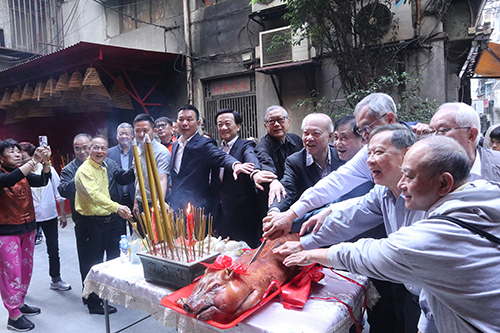 賀誕儀式於昨日下午4時舉行,現場進行傳統的上香參拜、化寶及金豬參神等酬神儀式,澳區全國人大代表、新橋坊會名譽會長劉藝良,行政會委員、街總理事長陳家良,石敢當行台值理會主席阮毓明,市政署文康社群處處長歐振榮,文化局文化遺產保護處處長何卓鋒,新橋坊會會長梁慶庭,蓮溪廟值理會主席陳志傑,以及街總副會長陳曉平、蕭東文、陸南德,副理事長顏奕恆、張淑玲,中區辦事處主任陳銘祺、副主任徐惠玲等出席,儀式簡單而隆重。