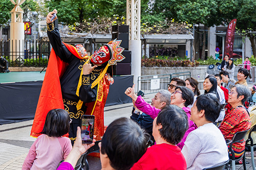 新春重頭戲《新春藝暖喜洋洋》特別邀請中國煤礦文工團來澳,於年初五至初六(2月21至22日)分別在大炮台花園、嘉路米耶圓形地(三盞燈)、氹仔嘉妹前地(北帝廟前地)及祐漢街市公園獻上多場精彩絕倫的傳統技藝表演,包括妙趣橫生的相聲、節奏明快的快板、詼諧風趣的雙簧,以及技藝高超的空竹雜技、精彩絕倫的川劇變臉和古彩戲法等。節目充分展現中國傳統表演藝術的獨特魅力,更在社區中營造熱鬧歡騰、喜氣洋洋的節慶氛圍,現場掌聲不斷。