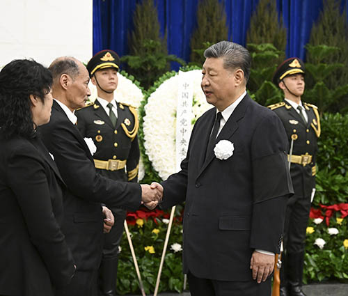 上午9時30分許,習近平、李強、趙樂際、王滬寧、蔡奇、丁薛祥、李希、韓正等,在哀樂聲中緩步來到宋平同志的遺體前肅立默哀,向宋平同志的遺體三鞠躬,並與宋平同志親屬一一握手,表示慰問。胡錦濤送花圈,對宋平同志逝世表示哀悼。