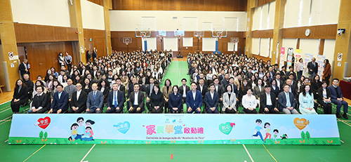 “家長學堂”啟動禮於昨日在鏡平學校(小學部)舉行,社會文化司司長柯嵐、社會文化司司長辦公室主任林媛、教青局局長龔志明、衛生局局長羅奕龍、社工局局長韓衛,教育委員會、青年事務委員會、婦女及兒童事務委員會委員,以及教育團體、家庭及社區服務團體、醫療團體、青年團體、家庭及社區綜合服務中心代表,非高等教育學校、家長會、托兒所代表等超過300人出席。
