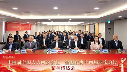 會議最後,黃來志調,澳門國際銀行全體員工要深入學習貫徹2026年全國兩會精神,緊扣國家“十五五”規劃、粵港澳大灣區建設和澳門經濟適度多元發展部署,主動融入新發展格局,化使命擔當。全行將持續深耕產業金融、華僑金融、跨境金融及財富管理等重要領域,加快業務創新與服務升級,助力澳門現代金融體系建設;充分發揮澳門連接內地與海外的橋梁紐帶作用,提升金融服務實體經濟質效,為服務國家戰略、助力區域發展和維護澳門長期繁榮穩定作出更大貢獻。