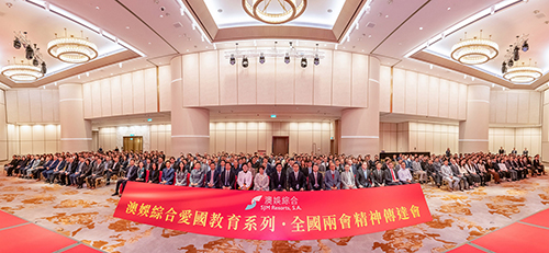 “澳娛綜合愛國教育系列全國•兩會精神傳達會”假新葡京酒店宴會廳舉行,獲中央政府駐澳門聯絡辦公室經濟部處長孫耀華出席支持。傳達會由澳娛綜合董事兼員工福諮會主席梁安琪擔任主持,並邀請全國政協常委何潤生,澳區全國人大代表吳小麗、何敬麟,及澳區全國政協委員林倫偉擔任分享嘉賓,向現場逾四百位澳娛綜合團隊成員傳達今年全國兩會的重要內容和訊息。為讓不同班次員工亦能同步了解兩會精神,澳娛綜合於同日下午在上葡京綜合度假村、新葡京酒店、凱旋門酒店及回力海立方的員工後勤區域播放重點內容。