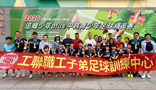 【本報訊】“追峰少年Plus中韓青少年足球精英賽”4月4至6 日於廣州番禺木生緣體育中心舉行。工聯職工子弟足球訓練中心選派了U8、U12及U15三支梯隊出征。面對雲集韓國勁旅及粵港澳強隊(如佳聯元朗U10/U11)的高強度賽場,澳門小將表現脫穎而出,最終勇奪U8組冠軍,並取得U12組第七名及U15組第四名的佳績。