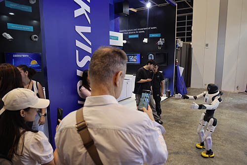 今次在港參展,眾擎帶來了PM01型號的人形機器人。這台機器人高約1.4米,具有機械式步態和擬人步態兩種行走模式。相關工作人員介紹指,所謂擬人步態,便是機器人在走路時像人一樣有輕微起伏和晃動,看起來更加人性化,這也更加適用於服務性場景。